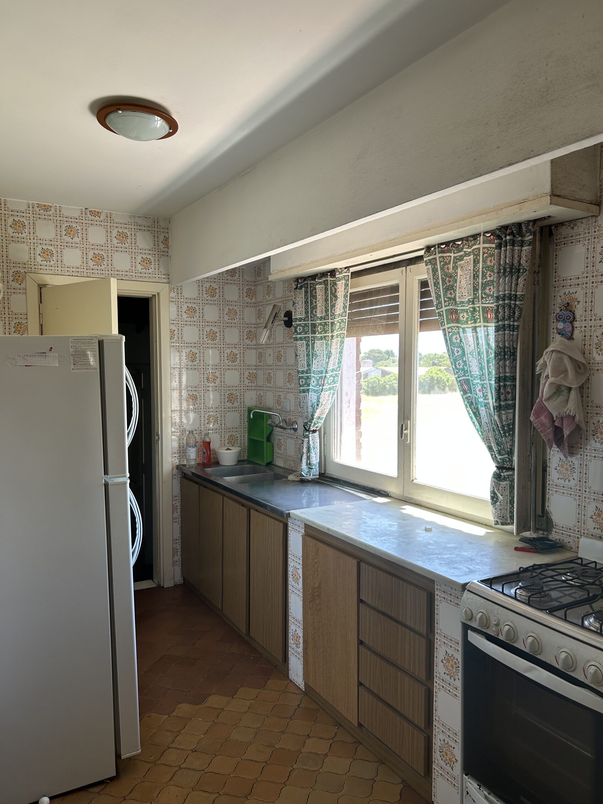 Cocina – Comedor Diario: Independiente y funcional, revestida con azulejos clásicos que reflejan la luz natural. Cuenta con amplias superficies de trabajo y una ventana con vista abierta al entorno verde, ideal para disfrutar de la luminosidad matutina.