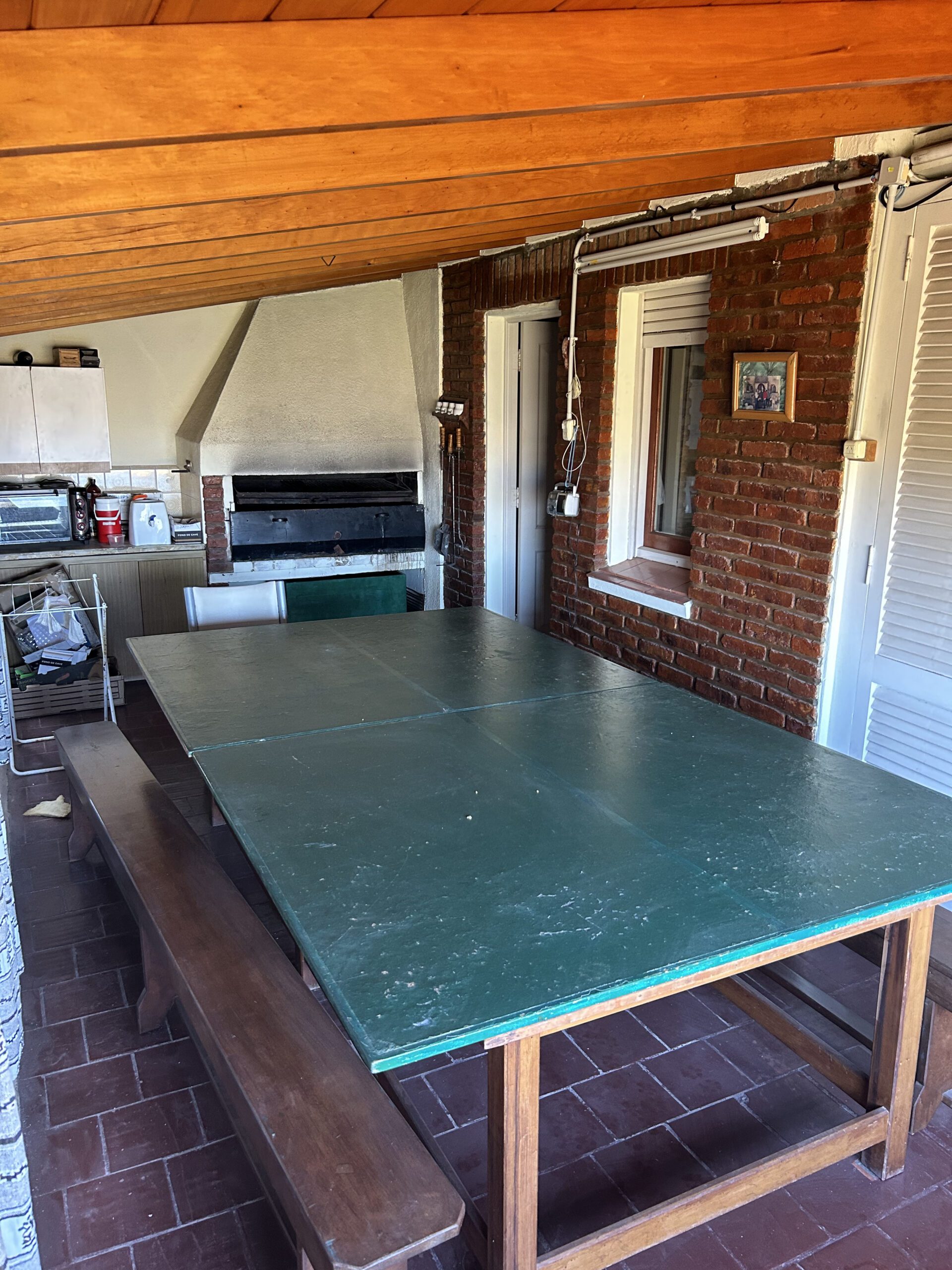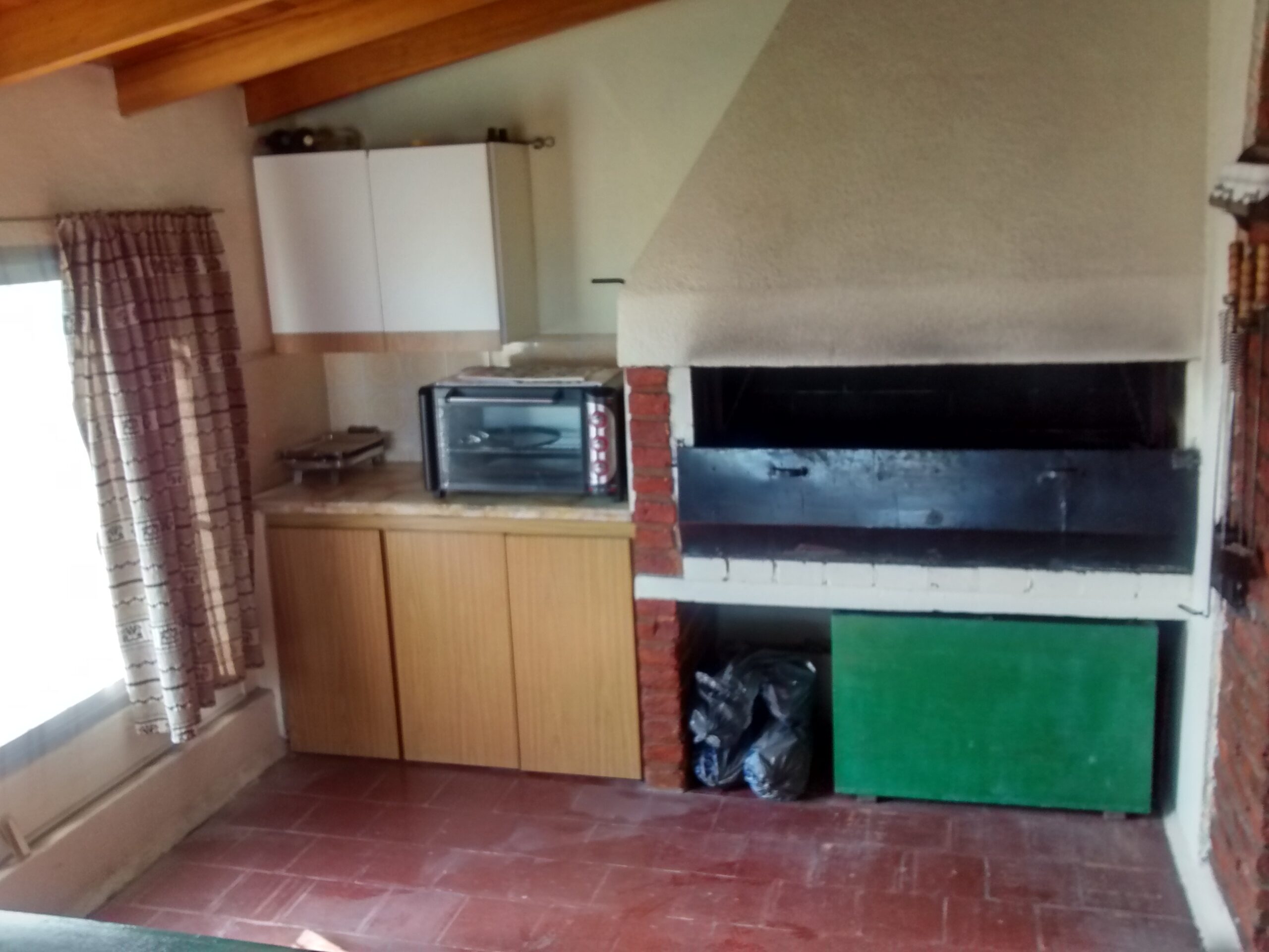 - Quincho con parrilla: Espacioso y luminoso, con ventanas al jardín lateral y al frente. Parrilla y espacio de mesada con mueble.