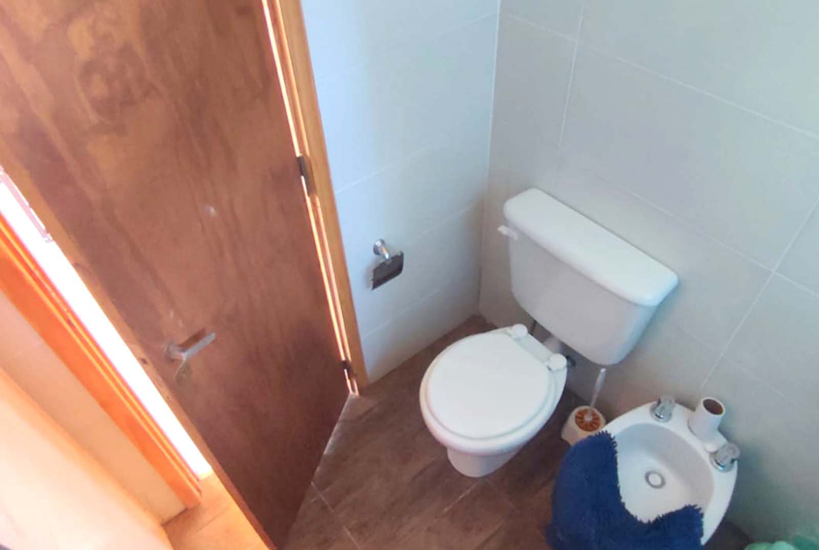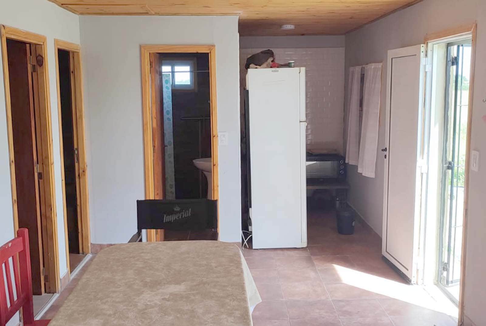 Amplio y luminoso living comedor con cocina, baño completo y dos habitaciones con placard. Aberturas de aluminio y postigos de madera en las ventanas exteriores.